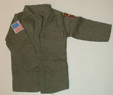 BEGIN. Take a look at this Soldiers of the World jacket and pants before the process of removing the Velcro begins. This is actually a pretty nice 4-pocket jacket with a color airborne patch and 48-star U.S. flag on each shoulder. It's amazing how much nicer these will look once the Velcro is removed. |